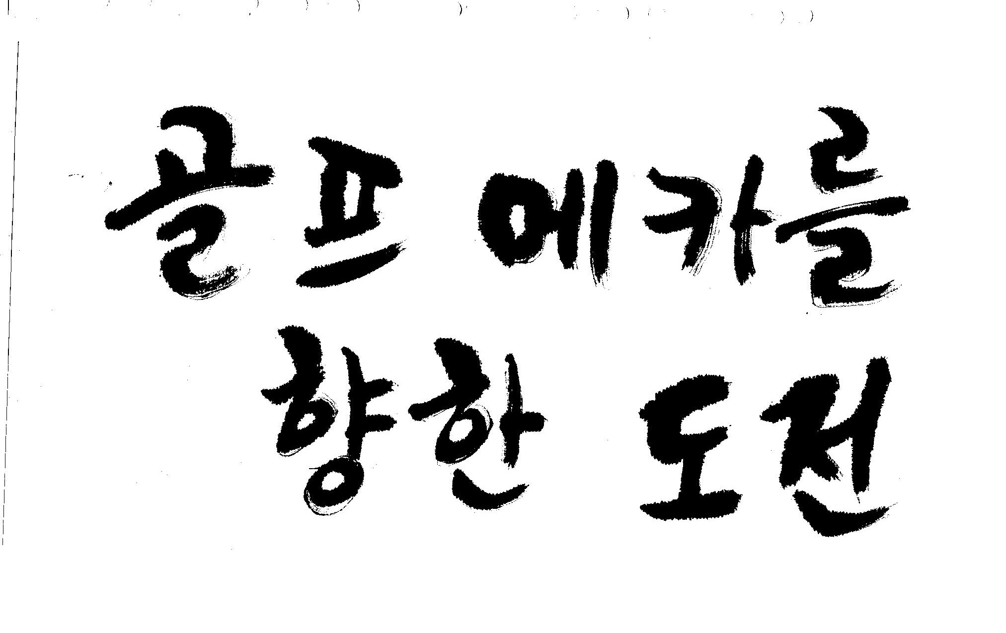 우경의 행복한 캘리세상-골프메카 김철호 일반 0 9056 2009.07.18 10:25 리듬감을 최대한 살리고 ㅡ 스포츠의 운동감과 밝음 기교섞인 획을 배제--일반적인 느낌 굵기변화를 통하여 도전 낱말을 강조 스타일은 비슷하지만 ...한 사람이 썼으니까 ㅎㅎㅎ 서로 다른 글꼴을 올린 것은... 비교하여 보시고... 편집자에게 선택권을 주는 것입니다