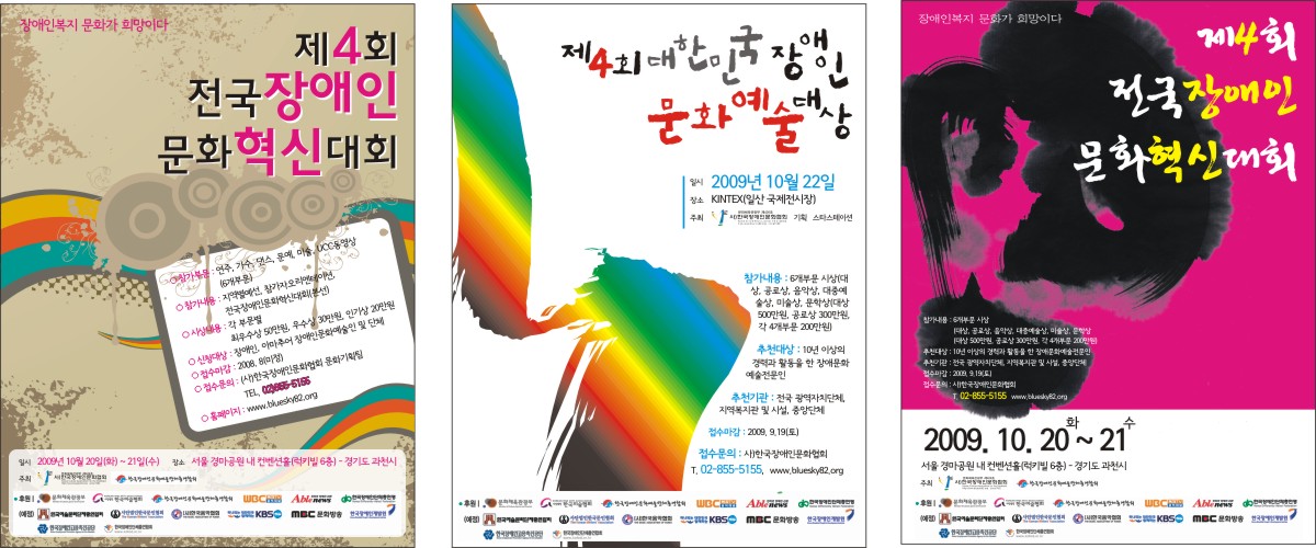 캘리 부탁좀 드려도 될까요? 길선진 일반 3 6379 2009.05.19 11:03 포스터에 제목을 좀 쓰려고 하는데요!!! 제4회 전국장애인문화혁신대회, 제4회 대한민국장애인문화예술대상 요렇게 두개만.. 부탁좀..드리겠습니다. -------------------------------------- 2절 포스터에 사용할 캘리입니다. 대충 컨셉은 첨부파일 정도로 하려고 합니다^^아직 수정하고 있는 단계라.. 미흡한 점이 많습니다.... 예인님 제가 미쳐 글을 보지못했네요^^ 죄송합니다!! 필요한거는 요번주 안으로다가 되면 좋겠지만... 바쁘시다면...조금 늦어져도 상관은 없습니다. 도와주세요~~~~
